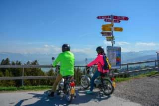 Erleben Sie das „Töfflibuebe-/meitle-Feeling" wie in jungen Jahren oder wagen Sie sich zum ersten Mal auf ein Töffli. Einfache Handhabung, viel Spass und ein Gefühl von grenzenloser Freiheit garantiert! Gemütlich tuckern Sie klimaneutral über verkehrsarme Panoramastrassen, geniessen die herrliche Aussicht, erhaschen da und dort einen Blick auf den imposanten Alpstein und spüren den Fahrtwind im Gesicht. Unterwegs gibt es eine Pause zur Stärkung und dann geht's weiter durch kleine Dörfer inmitten der hügeligen Appenzeller Landschaft. ca. 20 km : Teufen – Bühler – Trogen – Speicher – Teufen Optional: Sie beenden die Tour in der Erlebnis Waldegg und wir holen die Töffli dort ab. Aufpreis Pauschal CHF 50.00 Nach Ankunft in der Waldegg, können Sie sich im kultigen Schnuggebock oder im Restaurant Waldegg kulinarisch verwöhnen lassen. --> Gratis-Shuttle zurück nach Teufen Bahnhof. Der Ausflug findet bei jeder Witterung statt (ausser bei Schnee). Dem Klima angepasste Kleidung, Sonnenbrille (Helme sind mit Visier), festes Schuhwerk sind nötig. Die Mofas verfügen über Schutzbleche, bei Regen werden Regenponchos abgegeben.