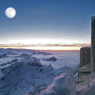 Das Bergpanorama im stimmungsvollen Mondschein geniessen. An jedem Vollmondabend findet auf dem Gipfel ein festliches Vollmondbuffet statt, begleitet von musikalischer Unterhaltung. Die genauen Daten sind im Eventkalender auf der Webseite der Säntis-Schwebebahn AG zu finden.