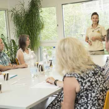 Der Seminarraum im Walter Zoo bietet Platz für bis zu 50 Personen und eine einmalige Aussicht auf die Tigeranlage. Verschiedene Verpflegungsoptionen sind möglich. Parkplätze und die Bushaltestelle befinden sich direkt beim Zoogelände. Und die Tiere – Schimpansen, Löwen, Kleine Pandas, Flamingos, Papageien und viele mehr – können nicht nur in den Pausen bestaunt werden: Es werden auch individuelle Führungen und Tierbegegnungen angeboten.