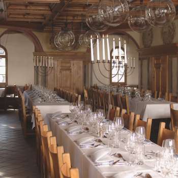 As it befitting for a 16th century building, the setting is characterised by halls, corners and nichts, offering a harmonious setting for special events. The names ‹Zillistube›, ‹Zollikoferstube›, ‹Rococo Stube› or ‹Burgerstube› have become part of the history of St.Gallen and can accommodate up to 120 people. Long-forgotten products are creatively paired with ‹good stuff› from the region to produce unforgettable culinary experiences. Kings, presidents and other high-ranking guests appreciate the culinary creations just as much as do covers of modern, open-concept, classic cuisine with St.Gallen specialities and selected eines from Eastern Switzerland.
